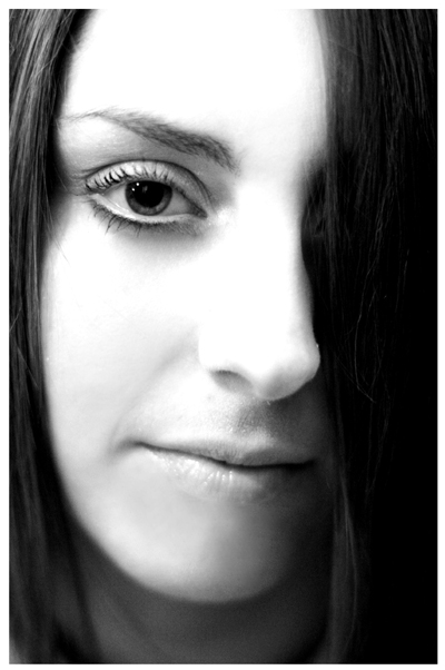 mi piace la nitidezza sull'occhio... forse la parte destra è troppo scura, mi fa sembrare mancante un pezzo di testa... avrei coperto meno parte di viso...