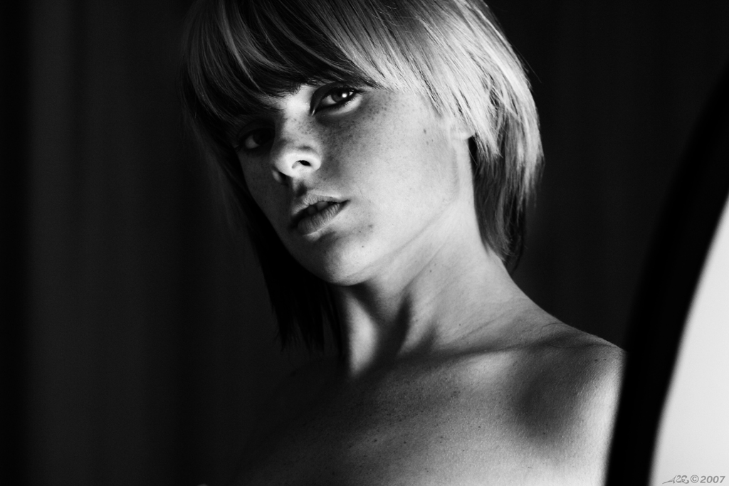 Splendido sguardo e luce molto interessante, però devo pure dirti che l'oggetto sfocato a destra la rovina parecchio, perchè non hai tagliato in verticale all'altezza della spalla? Secondo me guadagna non poco!