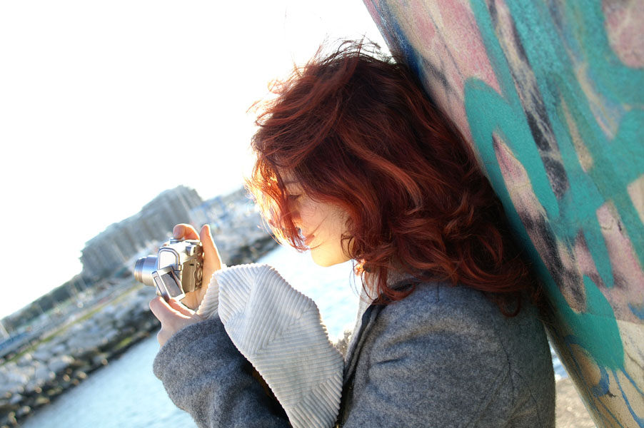 | mi piace, bello il richiamo tra gli azzurri (del graffito in primo piano, della giacca e dello sfondo) e la luce sulla capigliatura (bellissima); forse il viso sarebbe stato meglio non parzialmente nascosto dalla ciocca di capelli, ma si sa che non si può avere tutto; proverei ad attenuare un pochino la chiazza di luce sul mento per rendere l'esposizione del viso più uniforme |