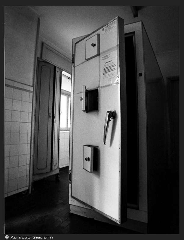 Questa è una di quelle immagini dove io non avrei inserito il titolo per lasciare piena libertà di lettura all'osservatore; credo che ne avremmo sentito delle belle: frigorifero? cassaforte? ripostiglio? autoclave?...stargate? Very Happy