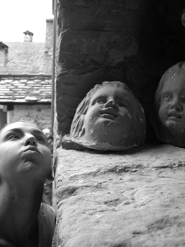 Il taglio terticale dà "Aria" al soffio e allo sguardo rivolto in alto della bambina e delle statue. Mi piacerebbe vedere l'originle, se questa è una posterizzazione.