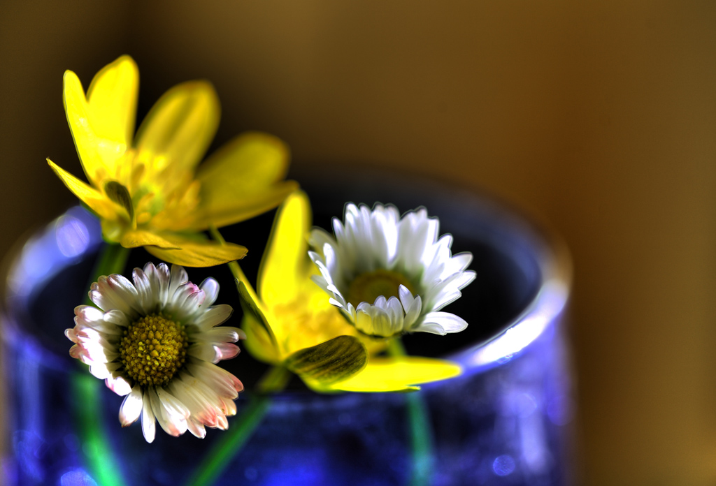 buona la scelta del bicchiere blu, fà risaltare di più i fiori  |