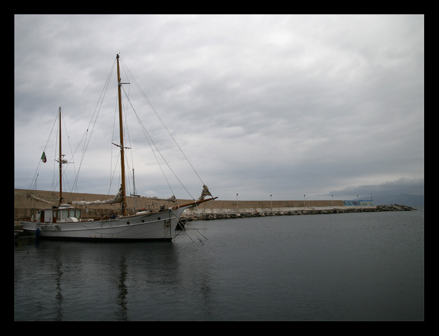 formidabile nei suoi colori cupi, buona l'idea di tenere il barcone tutto a sx