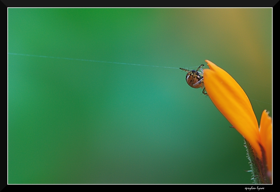 Bello scatto e composizione... simpatica la posizione del ragnetto! Ok!