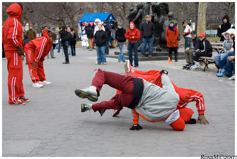 Situazione interessante colta in un buon momento (anche se, ma non sono un esperto, credo ci fossero delle posizioni ancor più caratteristiche della break). La composizione è ben eseguita e riesce a combinare bene la necessità di ambientare lo scatto utilizzando inquadrature ampie con l'esigenza di non sacrificare troppo il soggetto della foto. In questo caso la cornice di pubblico non disturba (le sovrapposizioni sono state gestite bene), e, grazie al colore (rosso) si "lega" ai breaker in primo piano. Un po' più di aria intorno al soggetto al bordo sinistro del fotogramma ci sarebbe stata bene.