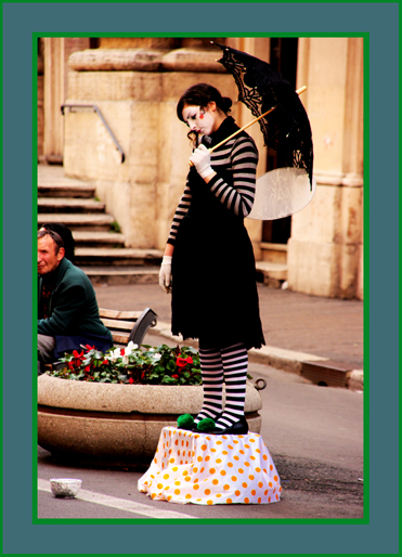 I mimi di strada offrono il vantaggio di lasciarci tutto il tempo per studiare l'inquadratura piu' idonea, girargli intorno e poi scattare con tutta calma. Conviene approfittarne....