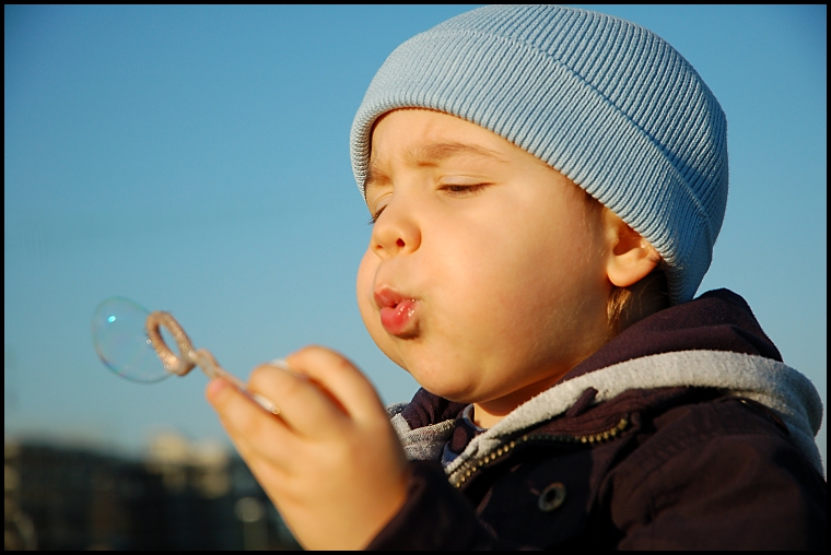 il soffiabolle potrebbe essere un trombettista nato...con quelle guanciotte!!! è stupendo! per niente "classica" la foto da papà al suo cucciolo, molto spontanea..poi non riesco a commentare altro...sono ammaliata completamente dal primo piano! tuo figlio è qualcosa di spettacolare..carina la foto con la luna, e ancor più quella con la coccinella..e il suo sguardo interrogativo-attento!stupore di un bimbo quando scopre che con la natura si può giocare, stando attenti!