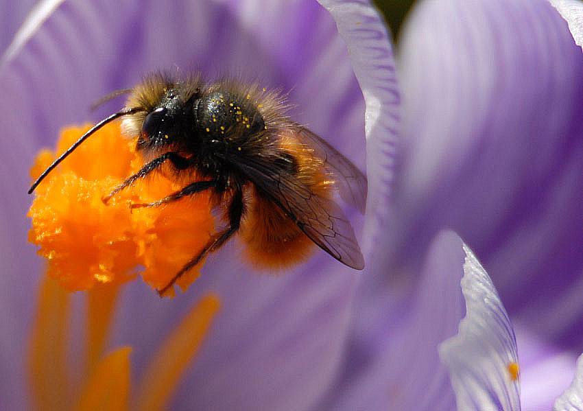 E' la seconda macro che vedo dove si possono contare ad uno ad uno tutti i granellini di polline sul dorso dell' insetto