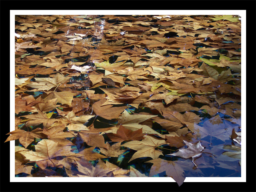 Le foglie erano in una fontana e i riflessi sulla sinistra sono quelli della fontana stessa. Non sono riuscita a toglierli senza rovinare la foto, quindi li ho lasciati.