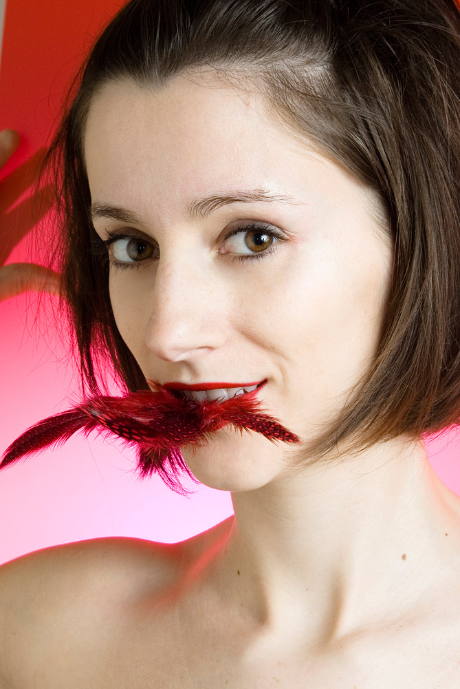 Scherzi a parte....idea delle piume straordinaria,composizione perfetta (mano compresa), colori spettacolari, gestione della luce molto professionale e dettaglio ottimo; anke se forse ,proprio a causa del troppo dettaglio, noto un evidente presenza di pori della pelle all'altezza del naso-fronte ke, molto personalmente, reputo un pò fastidiosa.