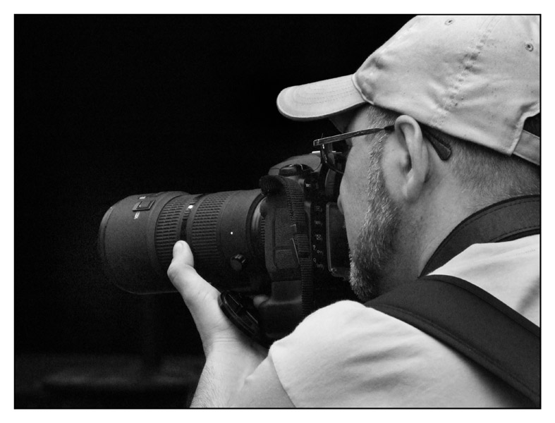 Cio' che non capisco e' se siamo di fronte ad un ritratto ad un corpo macchina + obiettivo o ad un ritratto ad un fotografo in azione. Secondo me a tutti e due e nessuno dei due. Insomma, a mio avviso una foto ambigua nel contenuto, della quale riesco solo ad apprezzare il buon b/n.