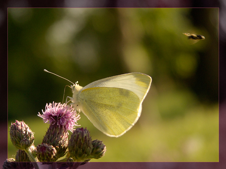 Quel mostriciattolo volante è un vero toccasana: rende unico lo scatto e bilancia perfettamente la posa "al contrario" della cavolaia Ok!