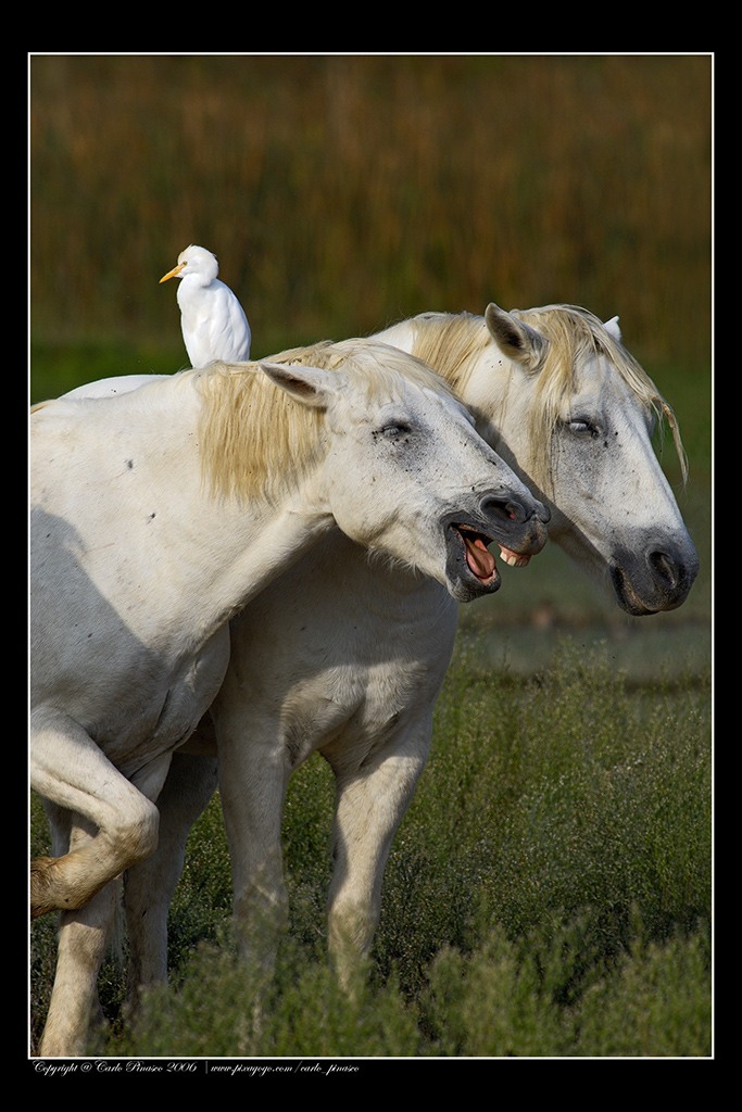 molto simpatica Ok! bella composizione e ottima scelta di tempo, il cavallo sembra stia ridendo perchè l'airone gli fa il solletico...
