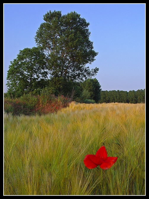 Cmq vi posso assicurare che non è fuori fuoco il papavero, è un'impressione anche perche basta vedere le spighe intorno....purtroppo credo che sia proprio un difetto della mia compattinanella gestione dei colori Triste
