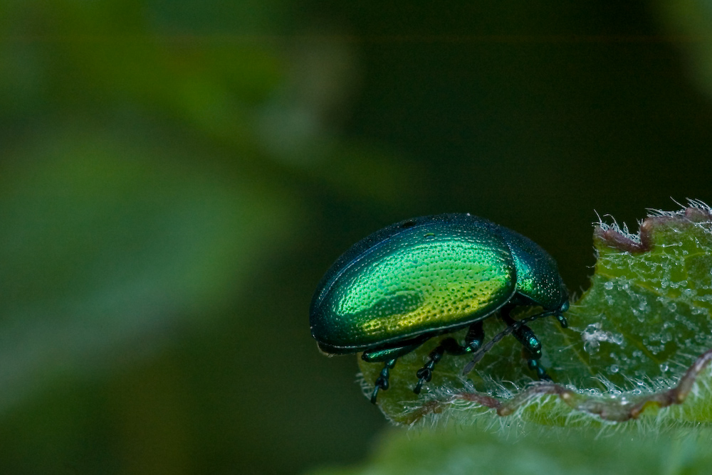 Mi piace molto questo coleotterino verde.. si vedono pure le goccioline sulla foglia! Smile