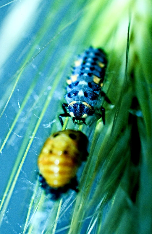 Se vuole essere uno stile personale,va bene,altrimenti direi che puoi fare di meglio. Iniziando da un punto d ripresa che renda giustizia anche all'insetto giallo. Magari con una maf che tenga conto di tutti e due gli insetti, con una pdc che permetta di avere a fuoco , anche se parzialmente,tutti e due. Lo sfondo è piuttosto irreale, sembrano foglie blu, potrebbe essere dell'acqua vista in trasparenza, ma allora riprendendo da un punto diverso, magari lateralmente, riuscivi ad aggirare il problema e ad avere uno sfondo più verde ( colore decisamente più naturale per le foglie!!) In alcuni casi le foglie le vedo bruciate,e su tutta l'immagine è presente un rumore veramente fastidioso ( sembra un'immagine scattata con un'analogica usa e getta). alla prossima foto, ciao  _________________ td.1867 = Toso Davide * NIKON & SIGMA