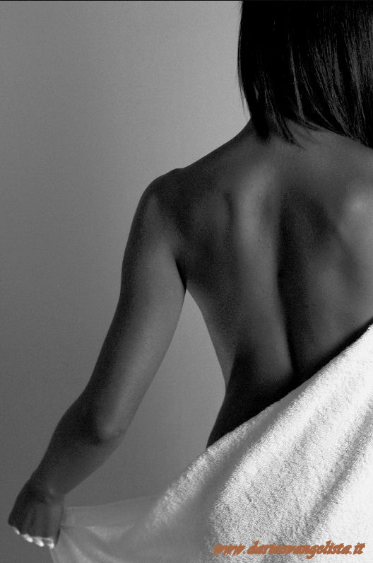 Visitatore????? Che è 'sta novità? La foto mi piace....bello il contrasto della pelle con l'accappatoio......un po' meno la luce sulla mano che rende innaturali le dita.