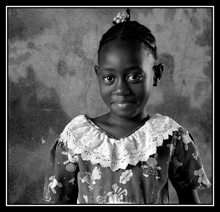 Salimata fa la foto da inviare alla famiglia italiana che l'ha adottata a distanza.