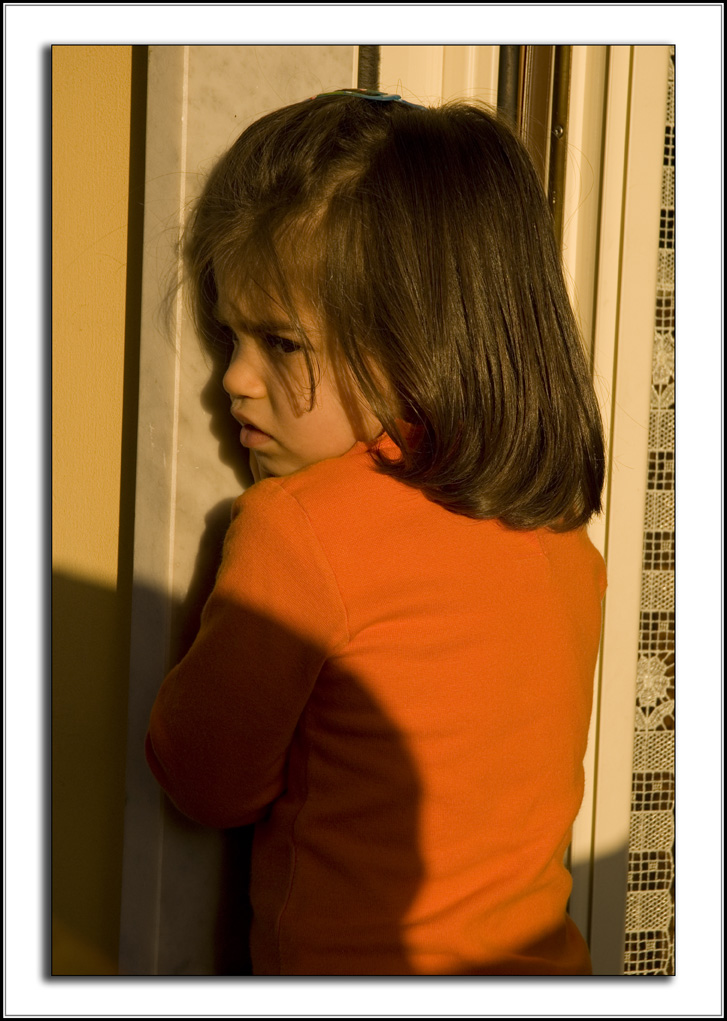 mi piace la tonalità del tuyo scatto, bella l'espressione della bimba, non sembra felicissima di essere ripresa