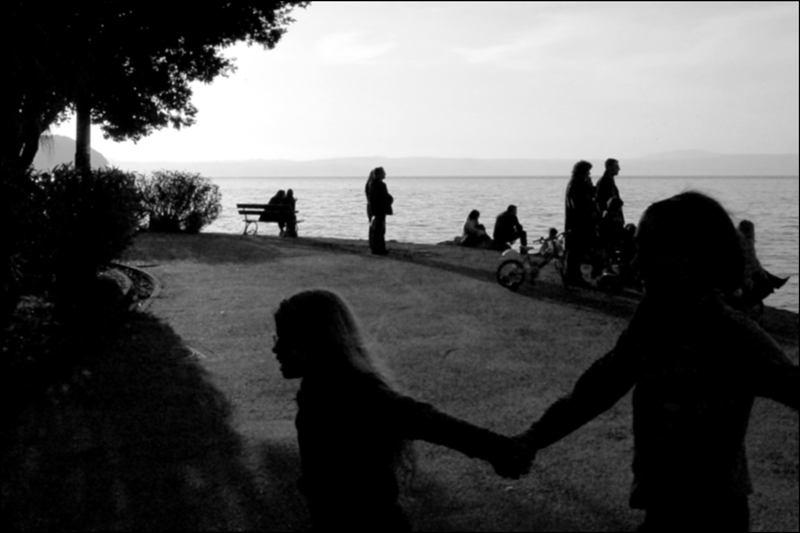 | joeyramone76 ha scritto: | Tecnicamente ben realizzata la foto suggerisce diverse interpretazioni. Colpisce molto la posa delle persone "congelate" sullo sfondo, intente a contemplare il lago che contrastano con la vivace posa delle sagome dei due raggazzini che si tengono per mano.