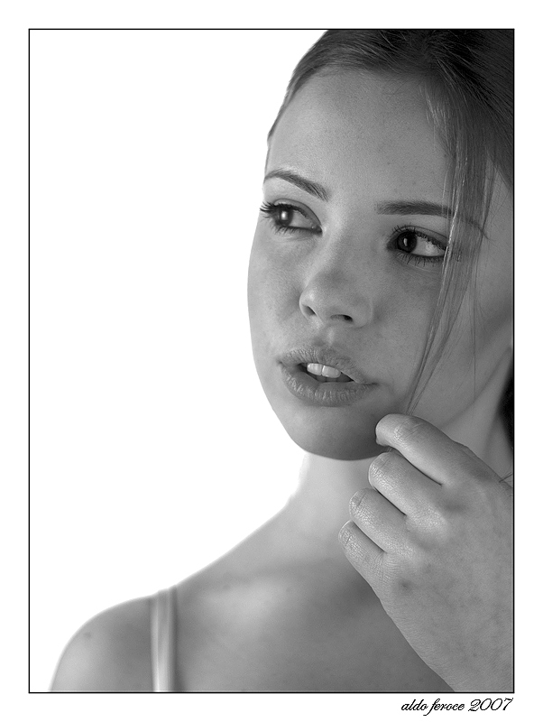 mi piace il taglio, le curve di passaggio soggetto-sfondo, lei ha un'espressione sognante... Ciao