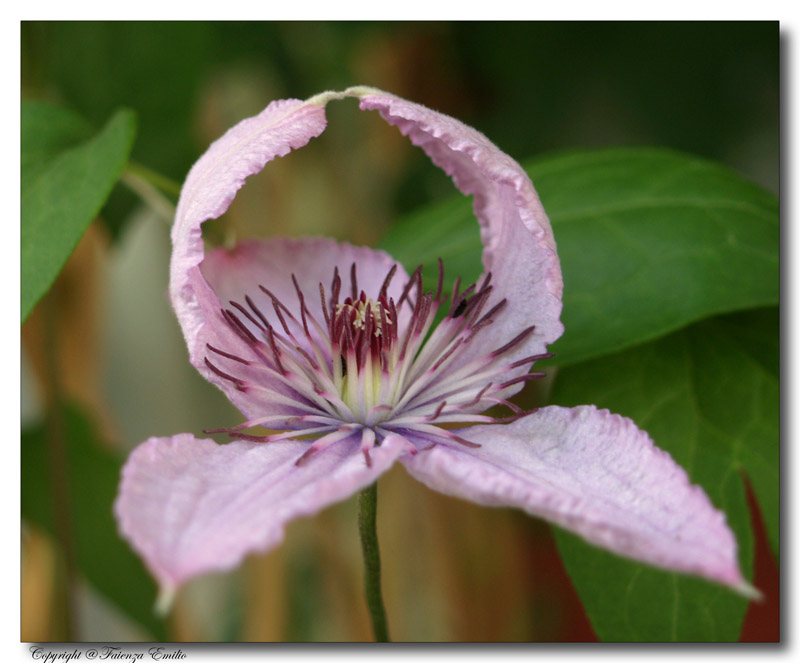 Ma che bella la posa di questa clematide ballerina!!!! lo scatto non è male, avrei però cercato di avere a fuoco anche li petali davanti, perchè così un po' disturbano il balletto retrostante. Forse si può migliorare un po' anche la nitidezza.