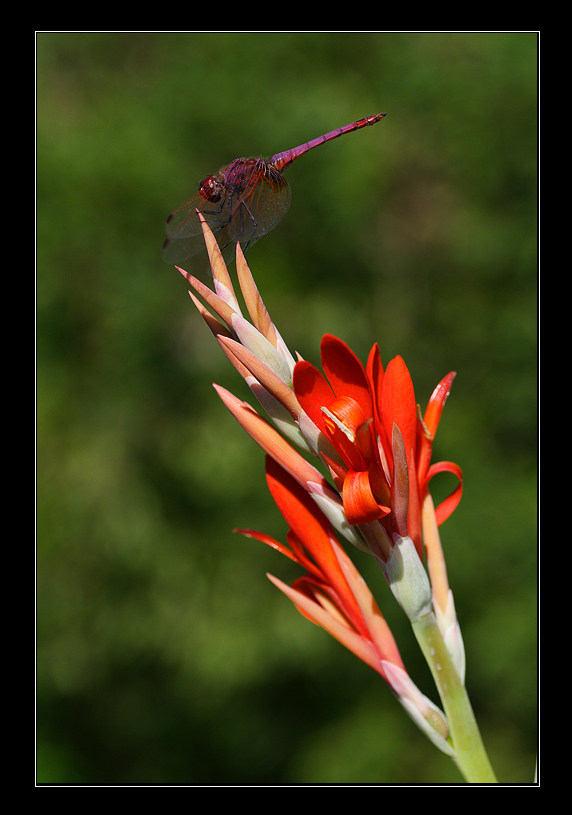 Sfocata la libellula non mi sembra, un po' scura sì, ma in Puglia avevano questa tonalità e nel cercare di schiarirla si potrebbe bruciare il fiore.