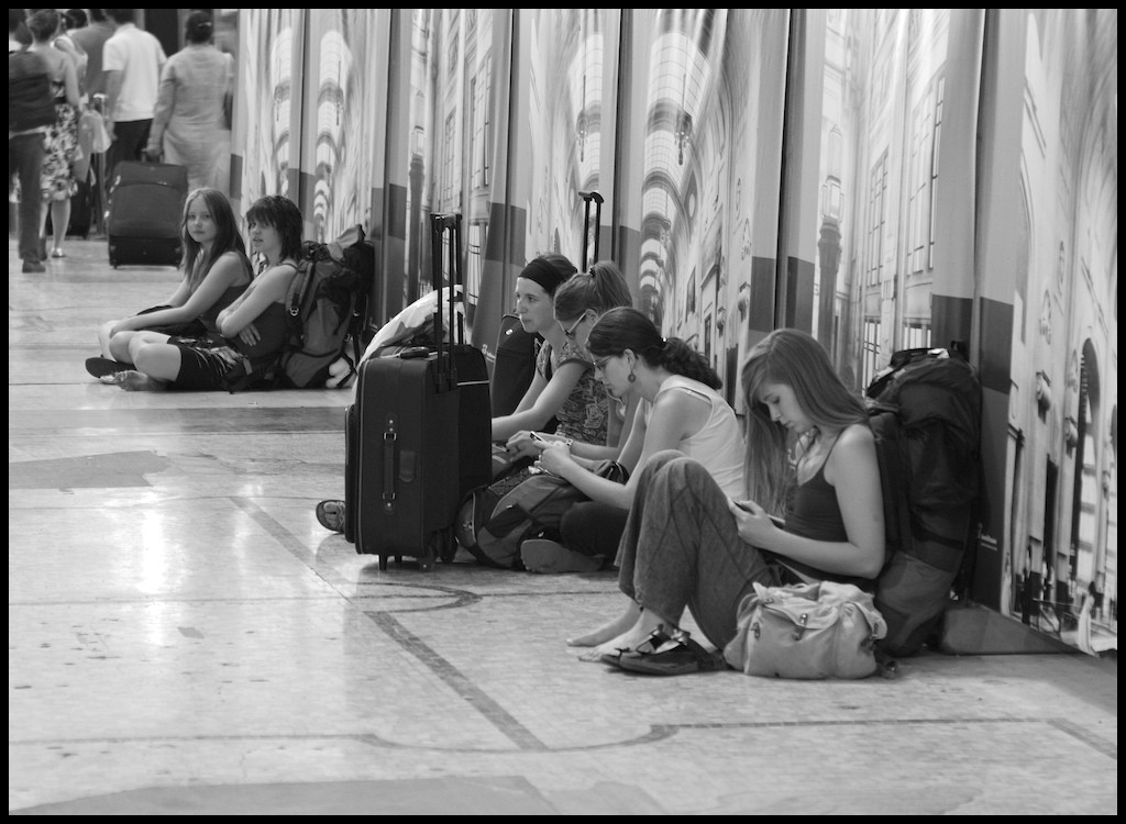 Mi piace molto la contraposizione tra le ragazze in tranquilla attesa e la frenesia degli adulti a bordo immagine.