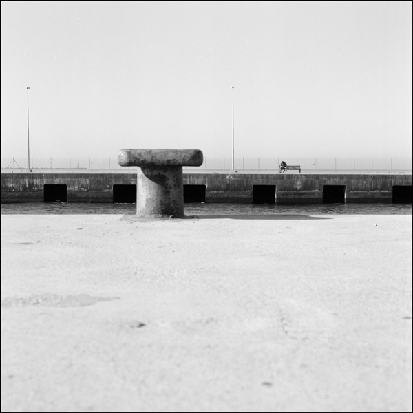 La figura umana in lontananza, così un pò reclinata e sola si contrappone al grosso ancoraggio in metallo, crea una composizione particolare.