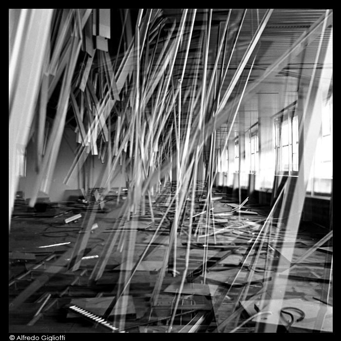 troppo gentile vale Imbarazzato Imbarazzato beh è un edificio qui nei dintorni... con il tetto sfondato... e da li è partita l' idea della doppia esposizione... esponendo in due punti diversi...