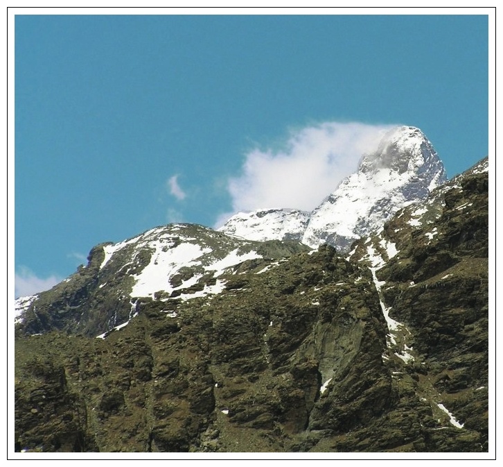 lo scatto originale secondo mè è migliore come composizione,avresti potuto migliorarlo ulteriormente decentrando il cocuzzolo per lasciare piu spazio a sinistra,dietro le nuvole, concordo con funboy per il rumore che non dovrebbe esserci in una foco cosi luminosa.