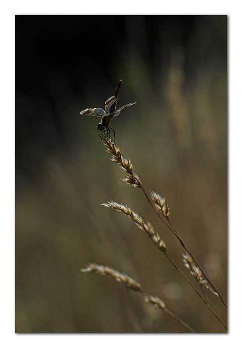 Con le ali distese a raccogliere il calore dei raggi del sole, pare aggrapparsi con forza questa libellula; quasi sospinta dal basso da un’improvvisa forza che rischia di strapparla via.