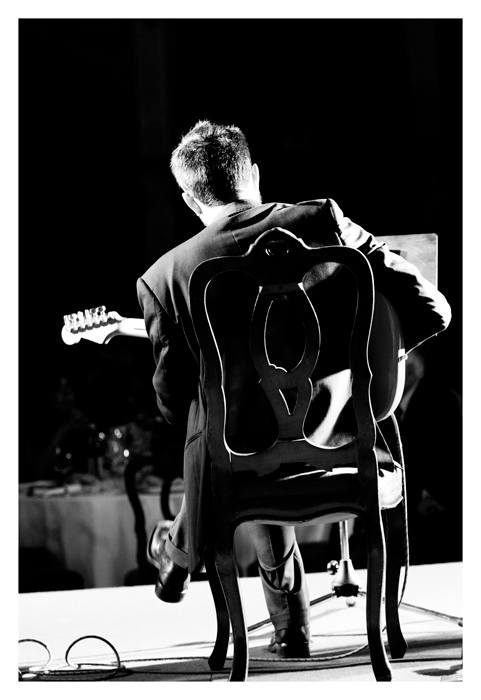 Per la foto: guardandola, ha più di qualche difetto, vedi ad esempio le gambe della sedia leggermente tagliate, qualche bruciatura qua e là, ma trovo che sia proprio la sedia a fare la foto, essendo antica ma "ospitando" un evento moderno.