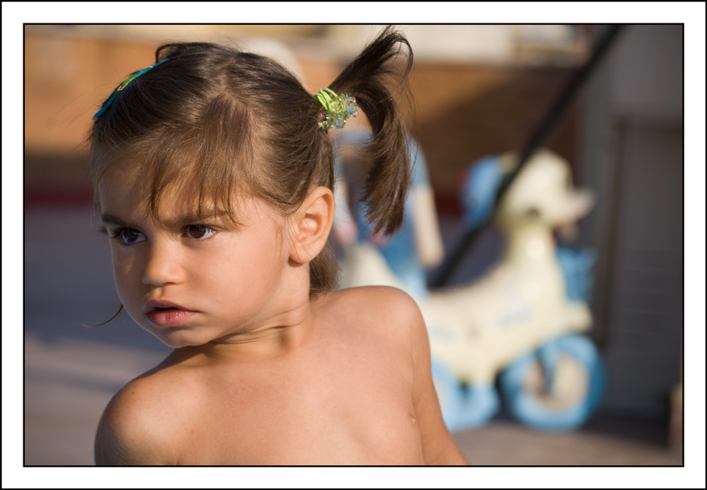 E' evidente che il ritratto è "rubato" in un momento di gioco della piccola.