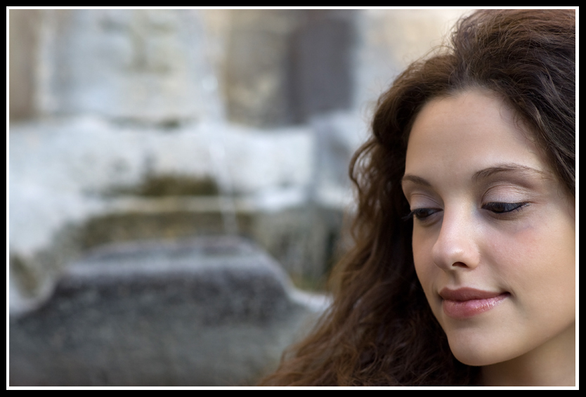 bello lo sgardo rivolto verso il basso della dolcissima modella bello anche quel leggero sorriso sembra voler sfuggire dalle labra forse un po meno spazio a sx sarebbe stato meglio magari un taglio quadrato