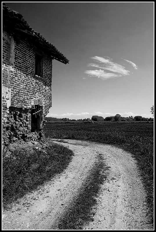 bellissima composizizione con quella casa in mattoni fattiscente e una curva che vien voglia di andar dietro per vedere cosa c'è...Quella piccola nuvola valorizza il cielo e la foto nel suo insieme è molto bella, bravo Spynet Ok! un saluto Lorenzo Wink
