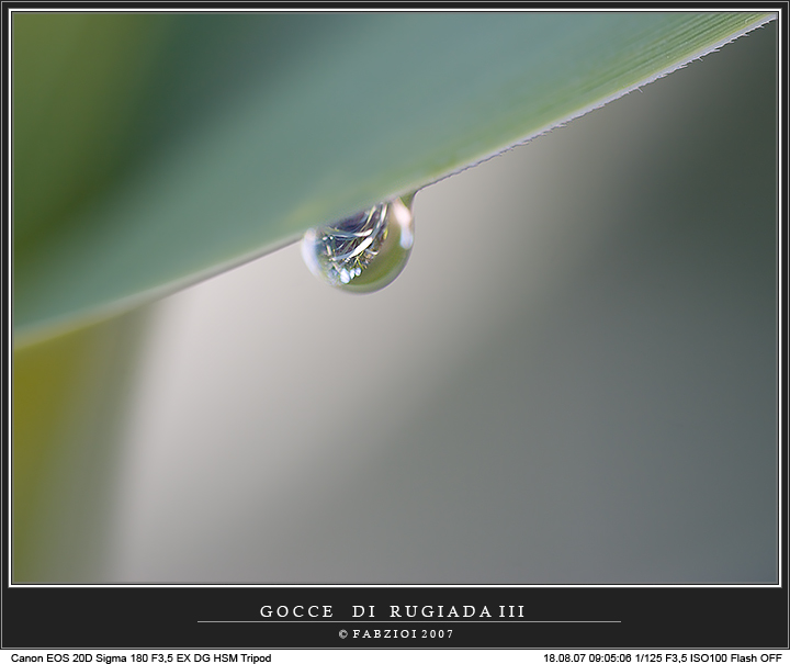 | AntonioLeone ha scritto: | Di una delicatezza estrema questa tua foto, complimenti. Non riesco bene a decifrare cosa riflette la gocciolina, mi pare un'oggetto di metallo o no?