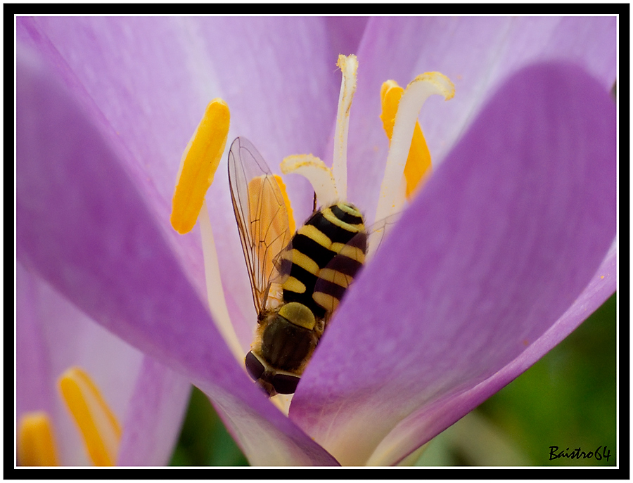 Splendidi i colori di questi crocus! Molto bella anche l'apina tutta intenta a trovar il polline! Il rumore non si nota, per la compo hai già detto tu! Wink