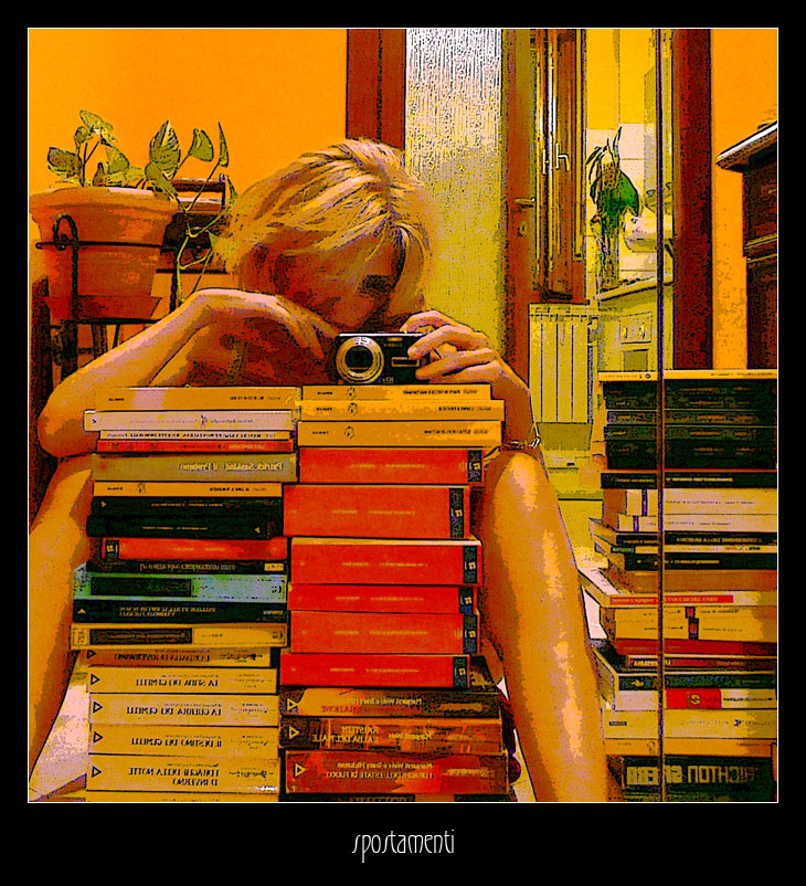 dici ''Spostamento''.. ma non era meglio a quel punto rendere i libri un pò più movimentati? così li vedo troppo statici.. quasi impilati lì ma come se ci dovessero restare per un pò..