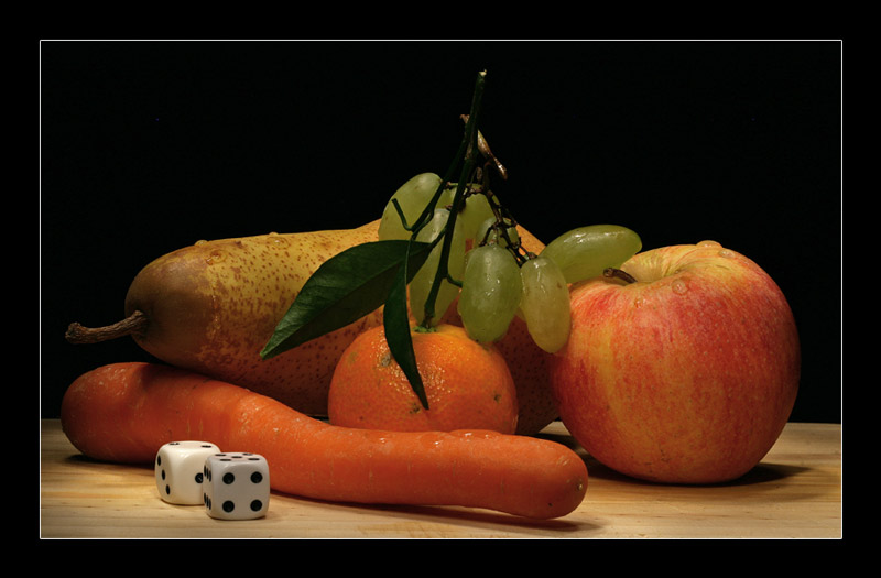 Ottima, secondo me, la gestione della luce. Tutti gli oggetti sono ben illuminati e non mi pare ci siano zone dove la luce è eccessiva. Avrei lasciato un pò più di spazio intorno. Bello lo sfondo nero Ok!