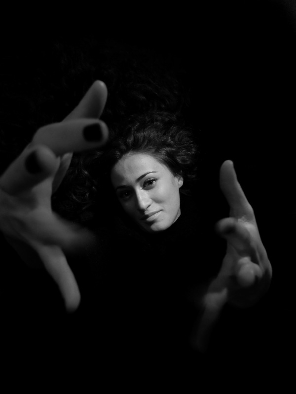 E' una bella idea. Se devo essere sincero, avrei voluto avere dettagli delle parti del corpo che stanno della testa in giù ed avrei voluto vedere le braccia. Ma mi piace l'espressione della tipa e questo suo agitar le mani verso me.