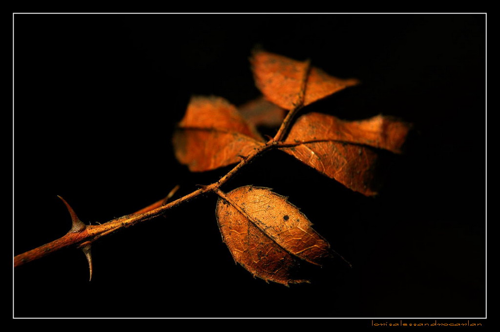 Mi piace come hai ritratto questo rametto.. la foglia in pp sembra di cuoio dorato