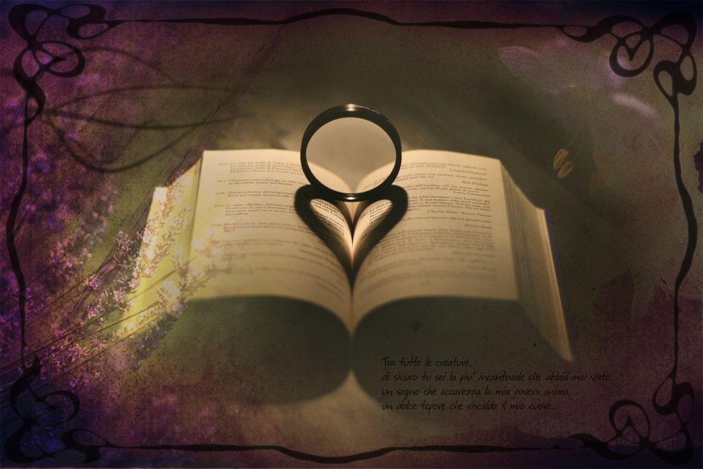 Personalmente, comunque, avrei sfocato di meno la parte bassa del libro, e cercato di dare una consistenza quasi uniforme ai fiori che ci sono sulla sinistra, che a tratti mi sembrano un po' troppo visibili..