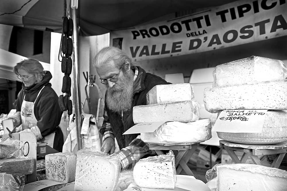 un bel bw, singolare il personaggio ripreso e la naturalezza della posa. Sei riuscito a tenere bon leggibili i bianchi dei formaggi in primo piano, cosa sicuramente non semplice.