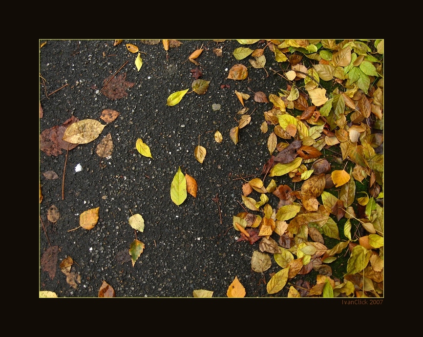 Lo scopo di questa foto era proprio legata ai colori autunnali e all'essenzialità delle foglie sul marciapiede.