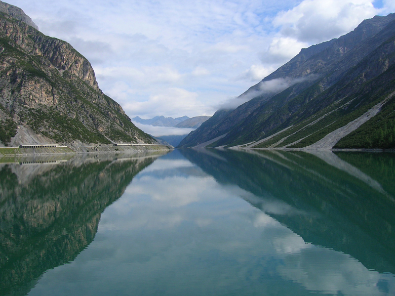 Mi ricorda una scena del film Koyaanisqatsi con la camera che vola a pelo d'acqua tra due montagne!