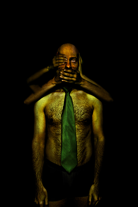 A grandi linee utilizzando hue-saturation, curve, scherma-brucia e mascherature, niente di più... per il colore. Per la composizione, l'occhio è stato aggiunto da una foto dove illuminazione era diversa e ritoccato separatamento e poi unito. La foto si compone di 4 scatti, tre per le braccia e uno per l'occhio. Eliminando anche di poco il nero sopra perde di pesantezza a mio avviso e allungando sotto avrei incluso le mani che ho scelto di lasciare tagliate. Grazie per il tuo commento  _________________ L'uomo è ciò in cui crede - A. Cechov |