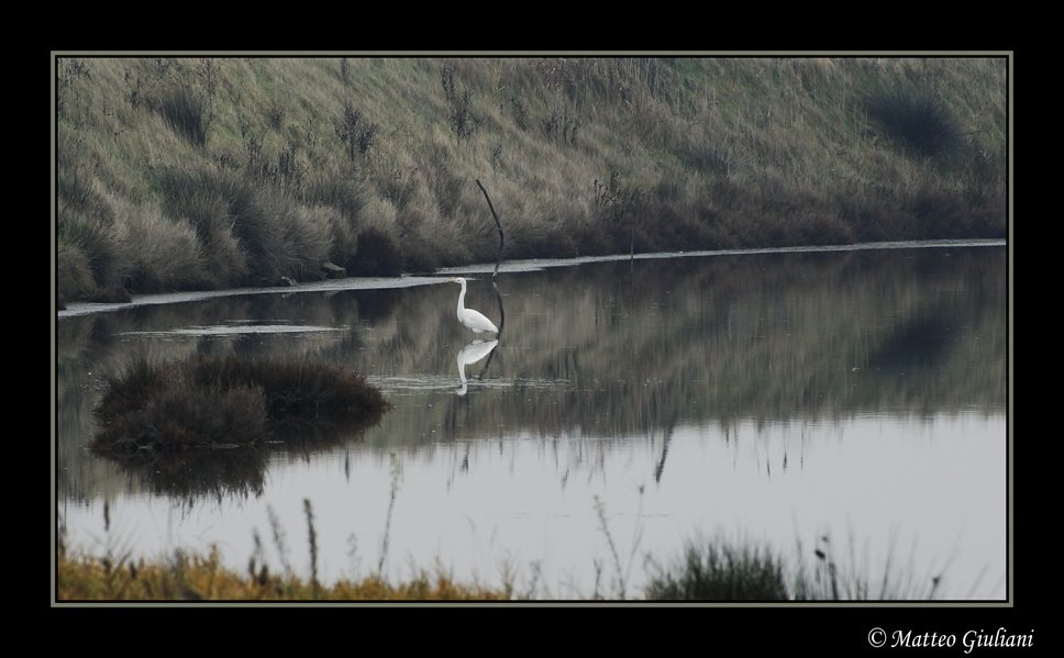Mi piace molto il gioco di riflessi airone bianco-giunco scuro, peccato che siano entrambi piccoli, meriterebbero di essere ingranditi.