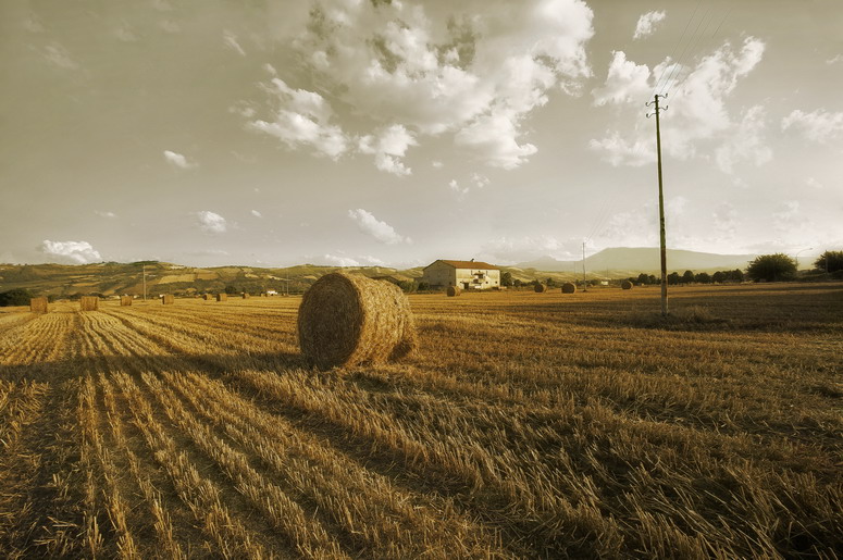 hai scelto il migliore momento della giornata per fare questo tipo di foto, quindi con luce calda e lunghe ombre. però, l'inquadratura non mi piace se devo essere sincero: avrei provato qualcosa di diverso (ad esempio, inserendo la balla proprio frontalmente alle altre, quindi girandomi un pò a sinistra e di conseguenza avrei posto sullo sfondo anche qualcosa in più di quelle catene di montagne che son lontano ed avrei evitato pure il palo dell'alta tensione....oppure a mali estremi crop successivamente. non amo le desaturazioni parziali, se non in casi rari(ssimi): questo purtroppo, non è uno di quelli. _________________ MY