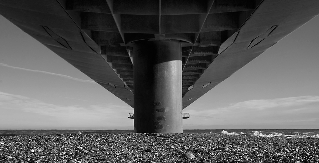 Visto dal sotto questo pontile dà proprio l'idea della sua robustezza ed imponenza. OTTIMO SCATTO e B/N BELLISSIMO Ok! Ok! Ok! Ok!